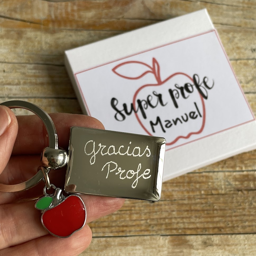 Pequeño llavero de acero inoxidable elegante grabado a mano con el texto que decidáis entre todas las madres del curso.
