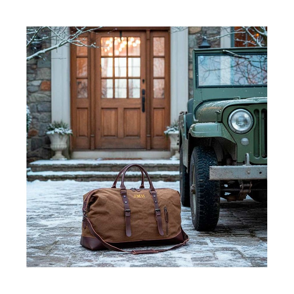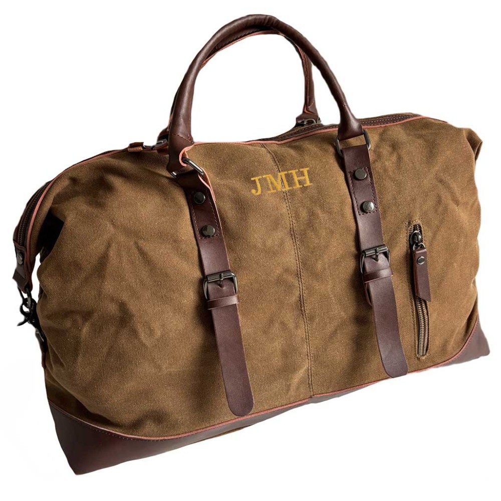 Regalos originales para hombre. Bolsa de lona, maleta o saco de fin de semana con cremallera y asas cortas y larga para llevar al hombro.