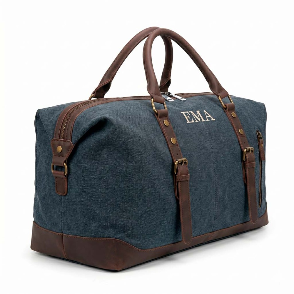 Maleta para hombre, personalizado con iniciales. Bolsa de fin de semana de lona personalizada con las iniciales bordadas.