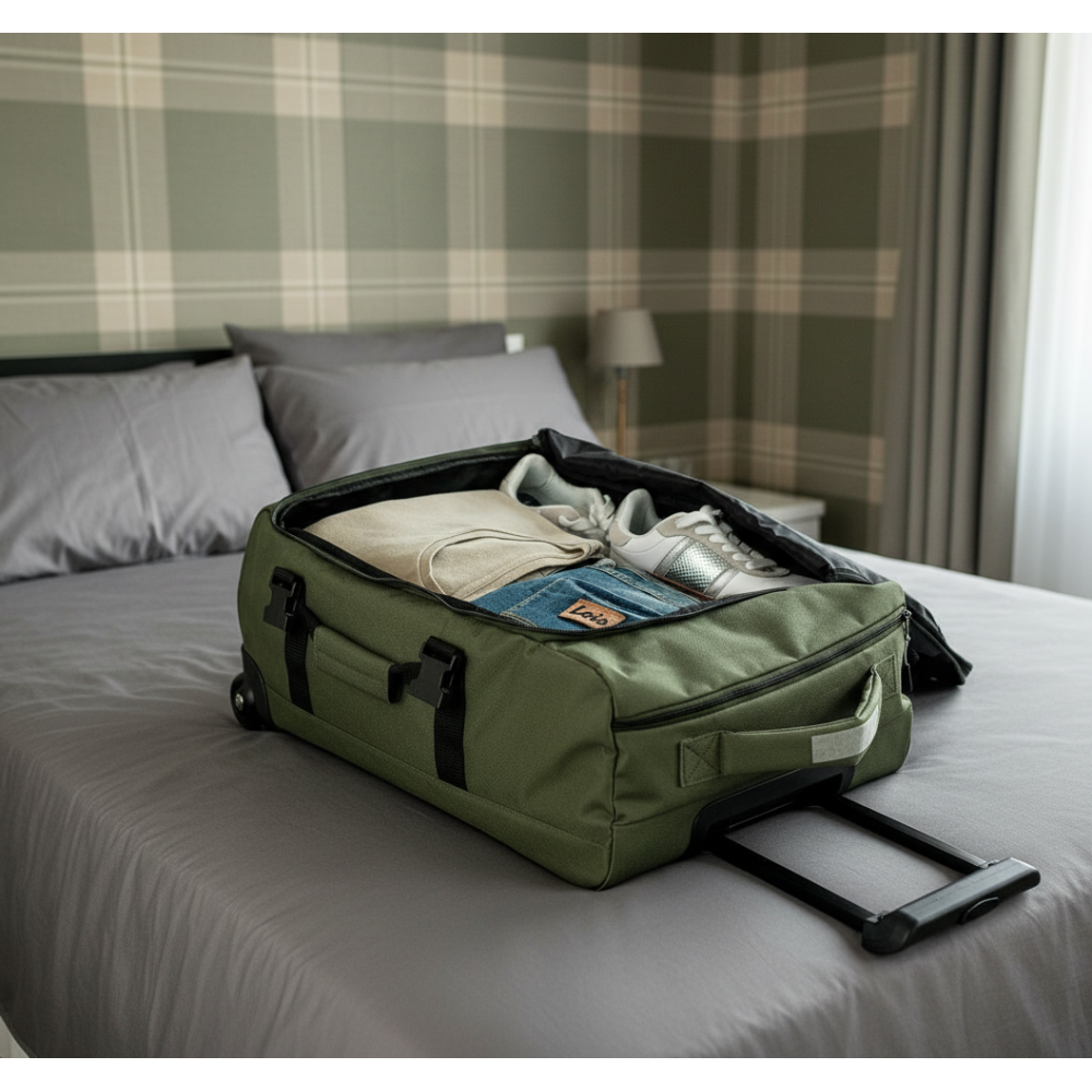 Maleta blanda cabina con iniciales verde