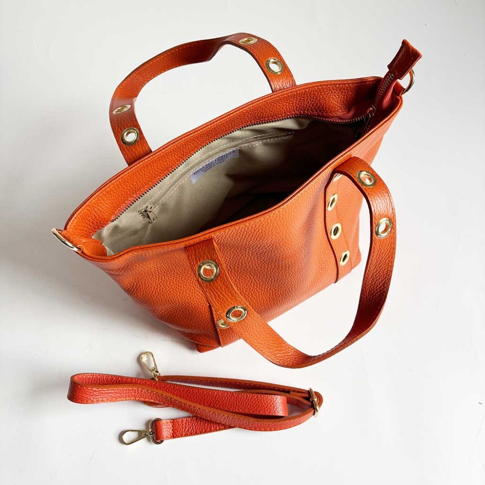 Con asas cortas y larga, con compartimientos interiores y cremallera.