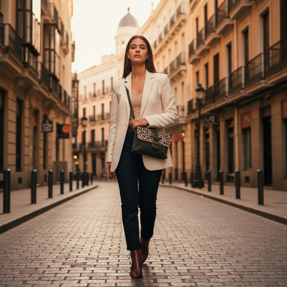 Bolso clutch de ante y con las solapas de animal print tipo leopardo. Disponible en verde caza y marrón, ideal para bordar las iniciales.