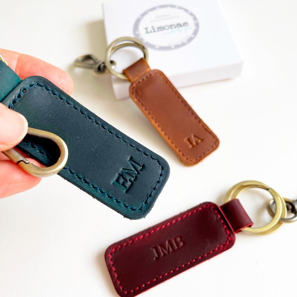 Llavero de piel MARRON personalizado con las iniciales de papá. Un regalo muy práctico y elegante con el que sorprenderás en el día del padre. Las iniciales se hacen en bajorelieve sin color.