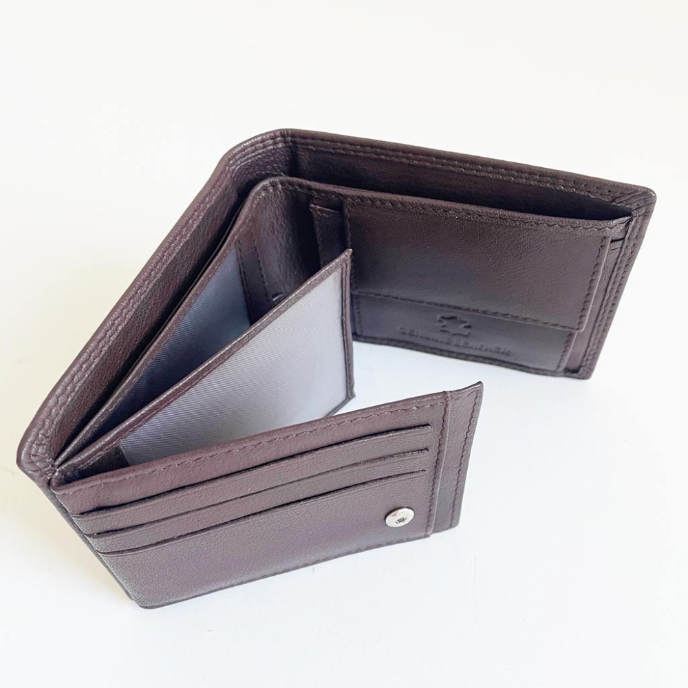 Cartera de piel de vacuno de color MARRÓN con diferentes compartimientos para guardar el dinero, billetes y las tarjetas. Tiene varios compartimientos muy prácticos para guardar las tarjetas, el carnet, etc.